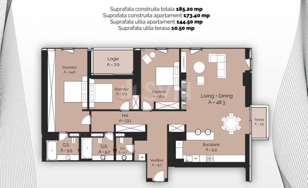 3 camere cu loc parcare subteran inclus