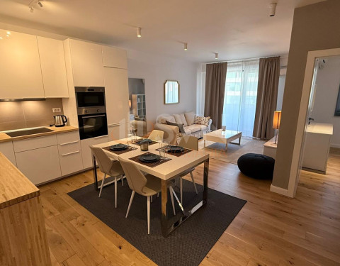 Apartamentul are o suprafata utila de 65 mp si este compus dintr-un living spatios si luminos, o bucatarie deschisa, complet utilata si mobilata, un dormitor confortabil, cu pat matrimonial si dulap, o baie moderna, cu cada si dus, si o terasa generoasa, de unde poti admira privelistea frumoasa a zonei verzi din jur. Apartamentul este mobilat la superlativ, cu piese de mobilier de calitate, cu design elegant si modern. Fiecare camera este dotata cu aer conditionat, televizor, internet si telefon. Apartamentul beneficiaza si de un loc de parcare subteran.