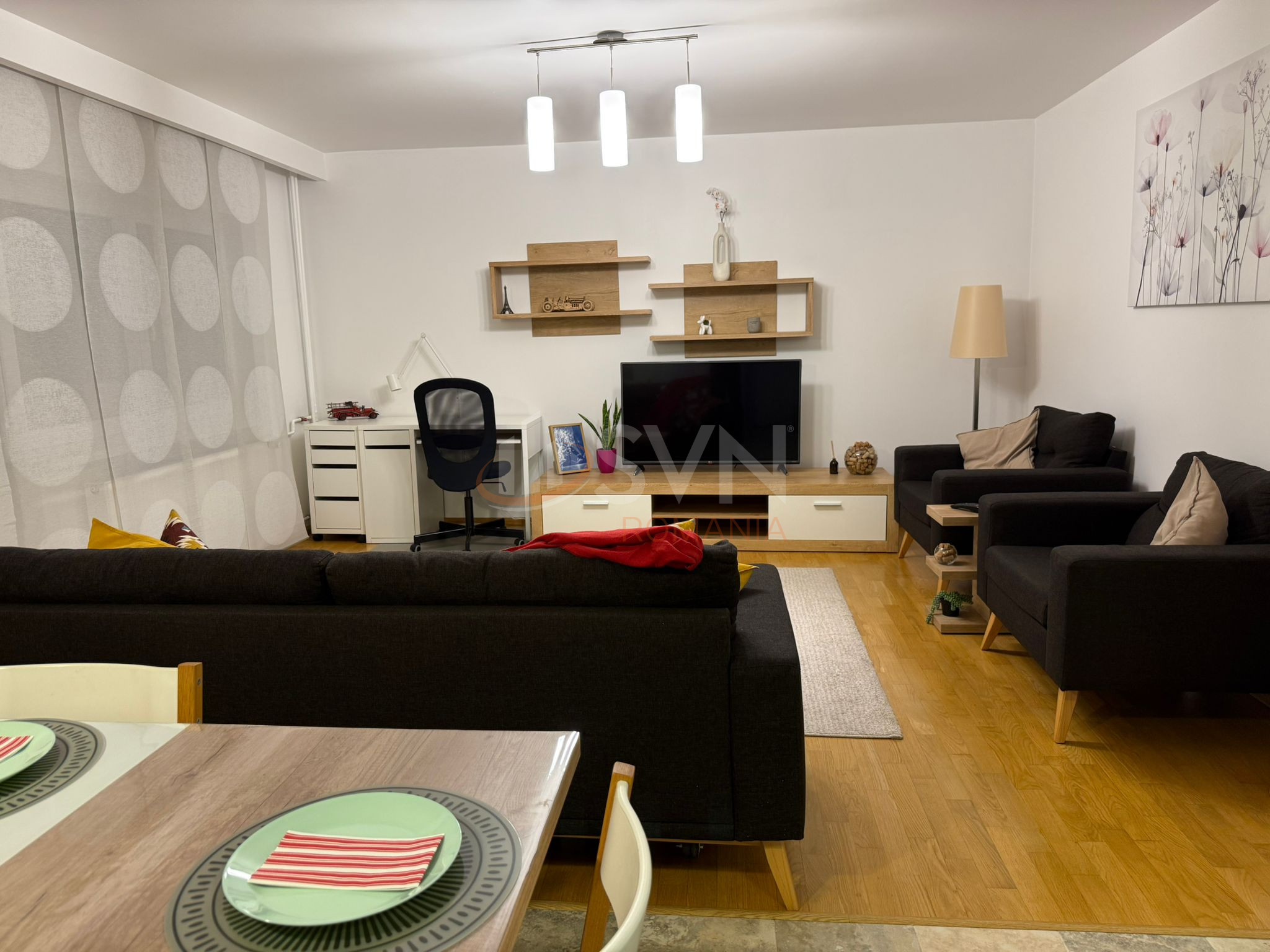 Designul interior a fost realizat in colaborare cu un designer de interior, iar apartamentul se inchiriaza complet mobilat si utilat, cu mobilier si electrocasnice de inalta calitate.
