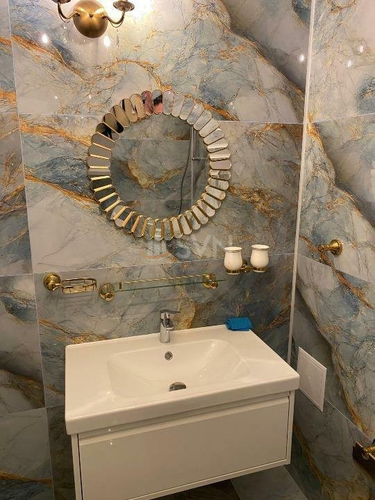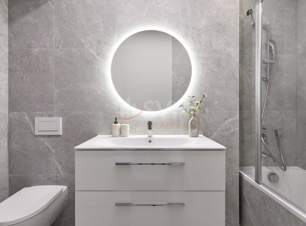 Parchetul masiv de stejar adauga un plus de caldura si rafinament, in timp ce usile furniruite si glafurile din marmura importata din Brazilia contribuie la un ambient deosebit. Gresia si faianta din Italia completeaza perfect designul interior, oferind un spatiu functional si estetic placut.