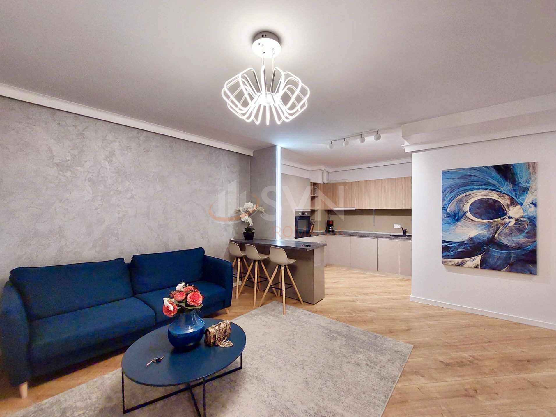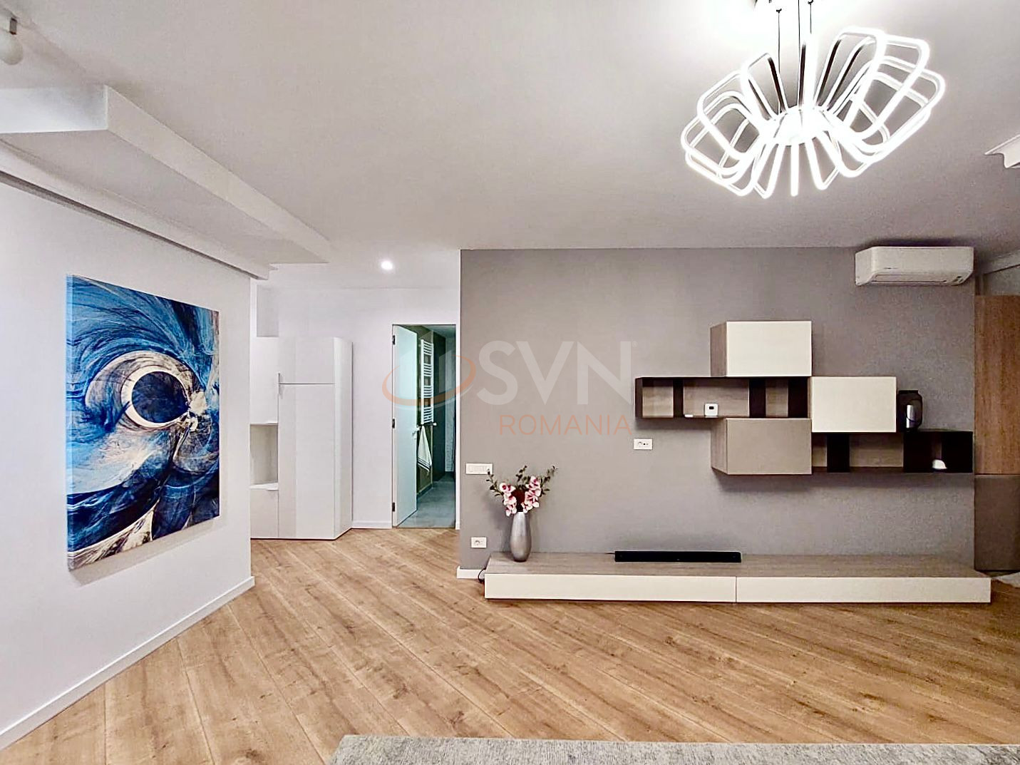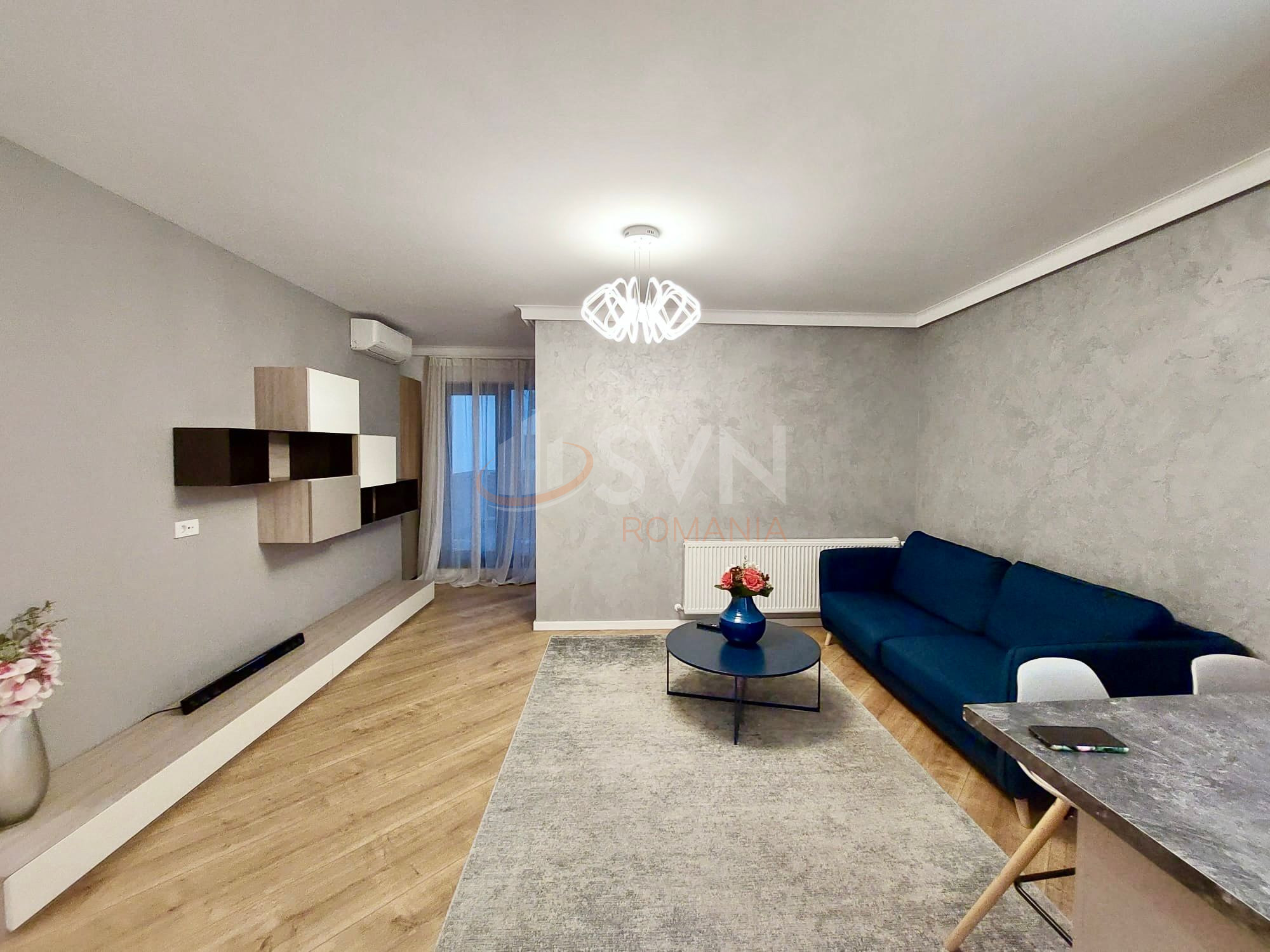 Apartamentul are 100 mp utili,complet mobilat si utilat,renovat recent, boxa, loc de parcare in subsol, doua dormitoare, 3 bai, bucatarie, debara, balcon, living, coridor. Aer conditionat in toate camerele.