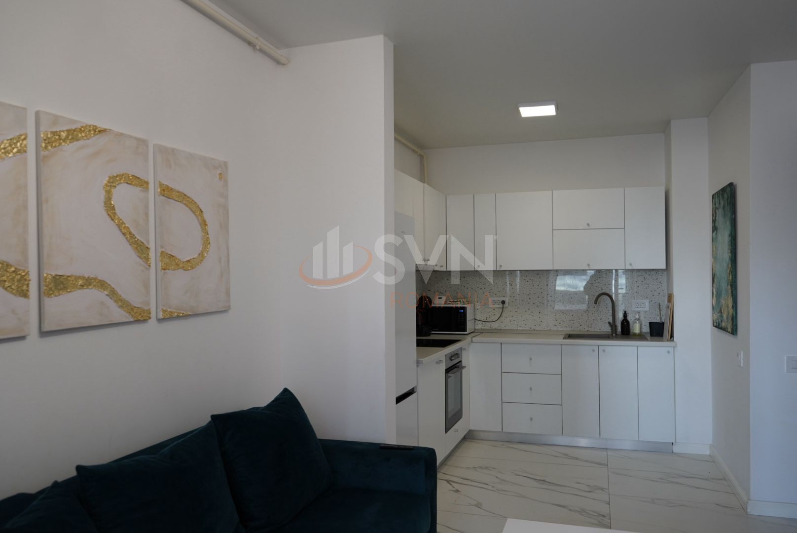 Locuinta beneficiaza de o compartimentare semidecomandata si este distribuita astfel: living-ul spatios cu ferestre inalte si bine iluminate, o bucatarie open-space, un dormitor, o baie cu cada si doua balcoane de 5 mp, respectiv 3mp.