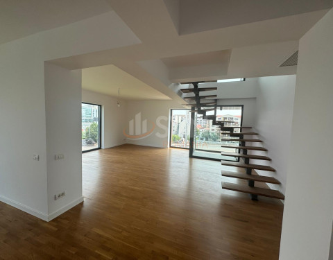 Apartamentul, situat la etajul 3 dintr-un imobil cu 7 etaje, ofera o suprafata utila generoasa de aproximativ 100 mp, completata de o terasa spatioasa de 22,50 mp, cu o priveliste incantatoare catre Promenada. Finisajele sunt de inalta calitate si includ incalzire in pardoseala, centrala termica proprie si ferestre mari, care asigura lumina naturala pe tot parcursul zilei.