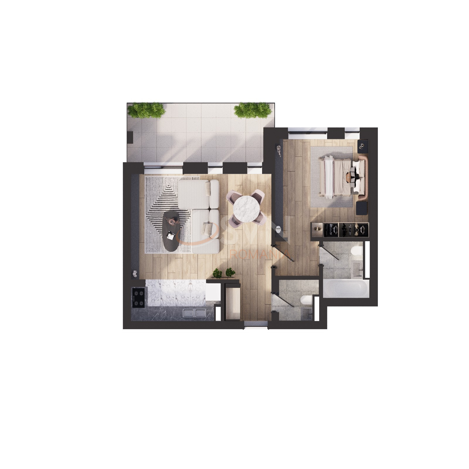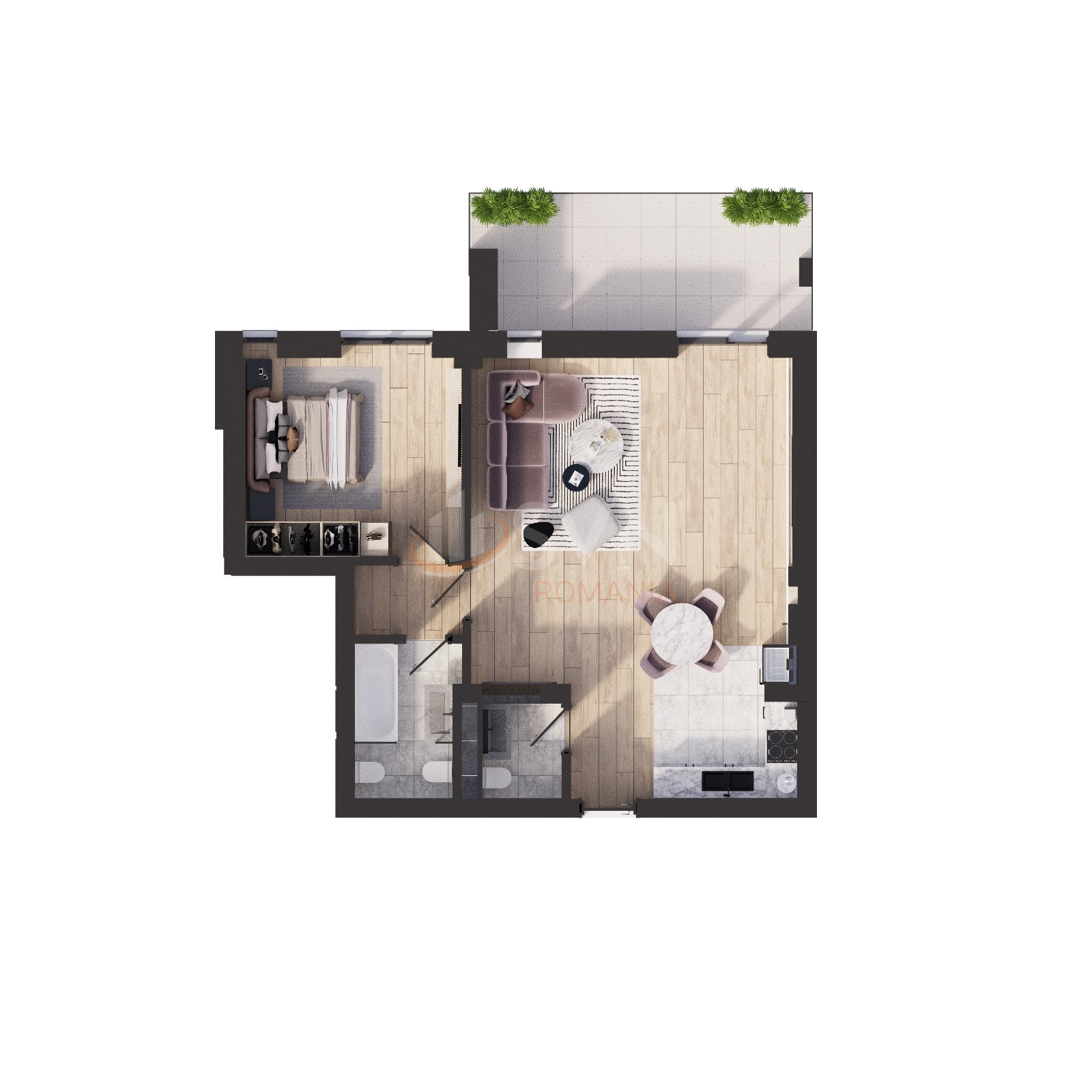 Apartamentul este la etajul 7/8 si are o suprafata utila de 52,5 mp si o terasa de 12 mp.