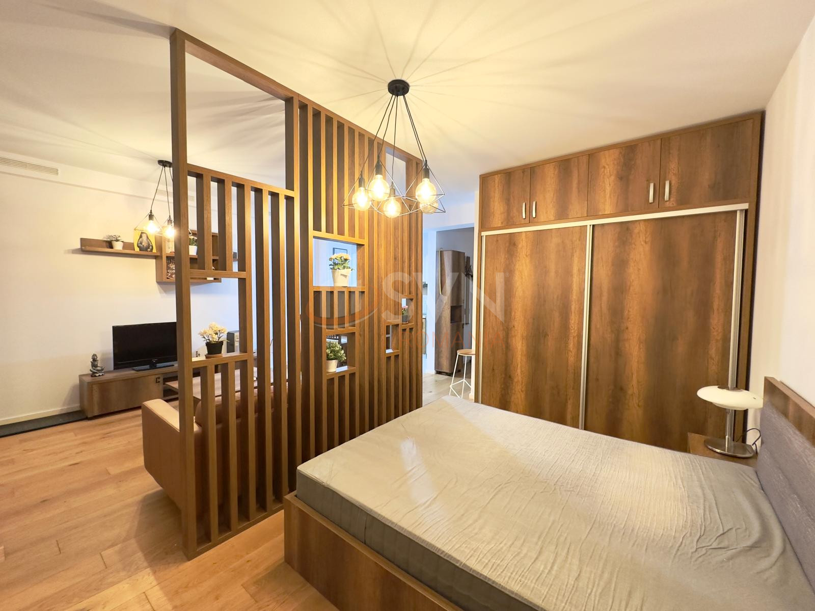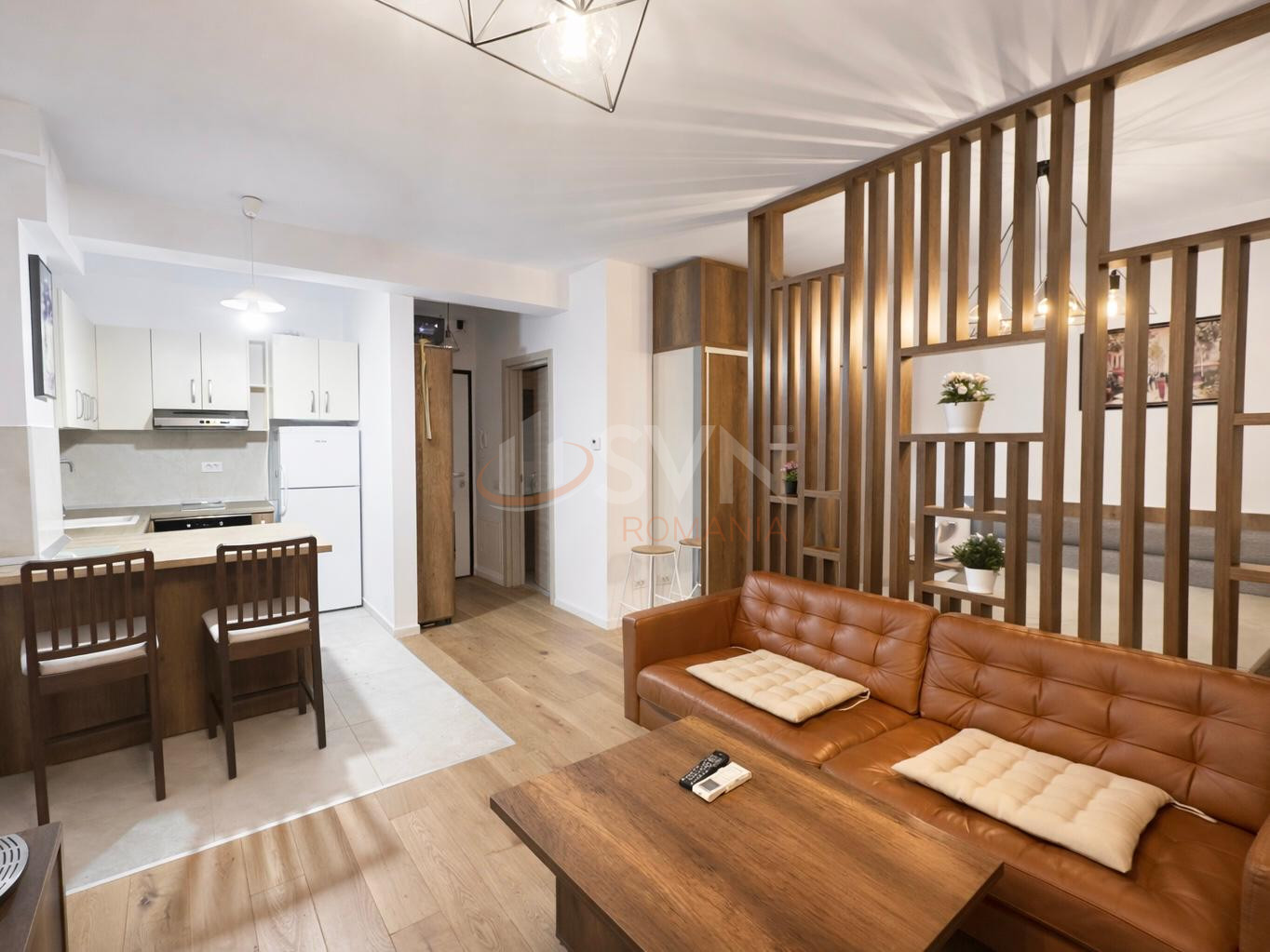 Living-ul cu suprafete vitrate mari,separat de zona de noapte, bucatarie