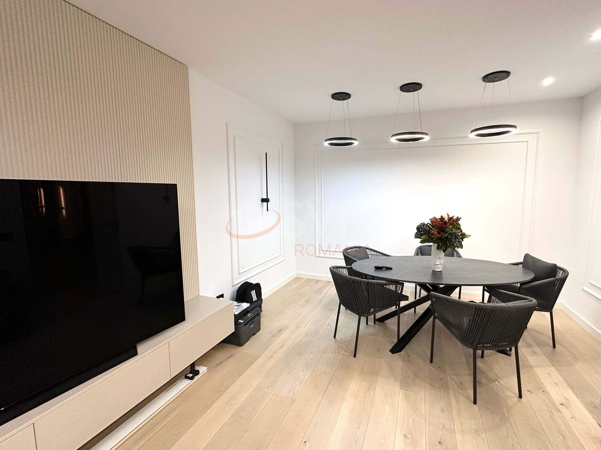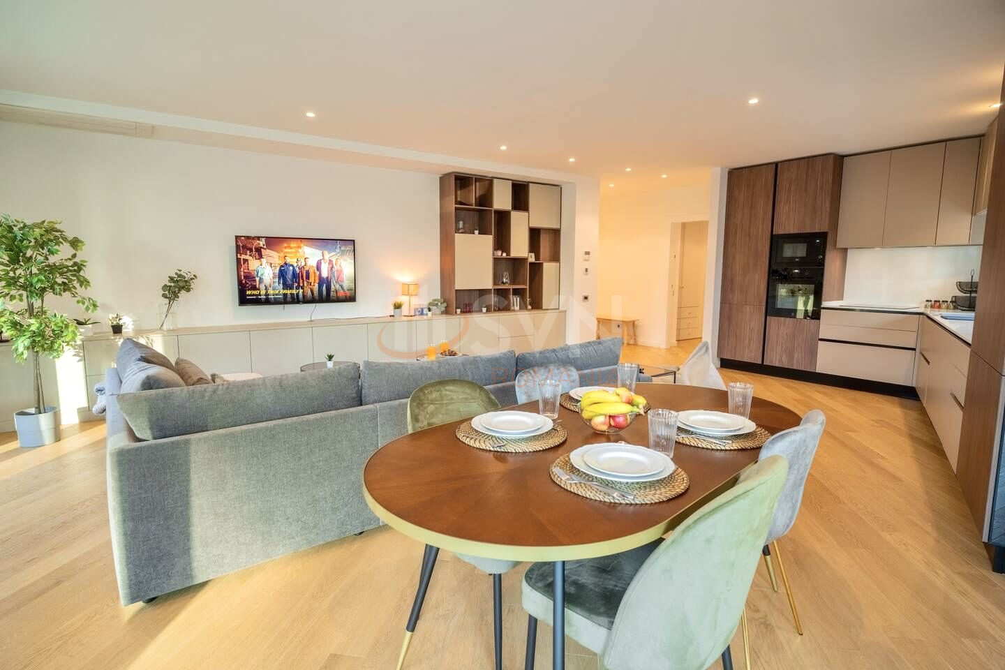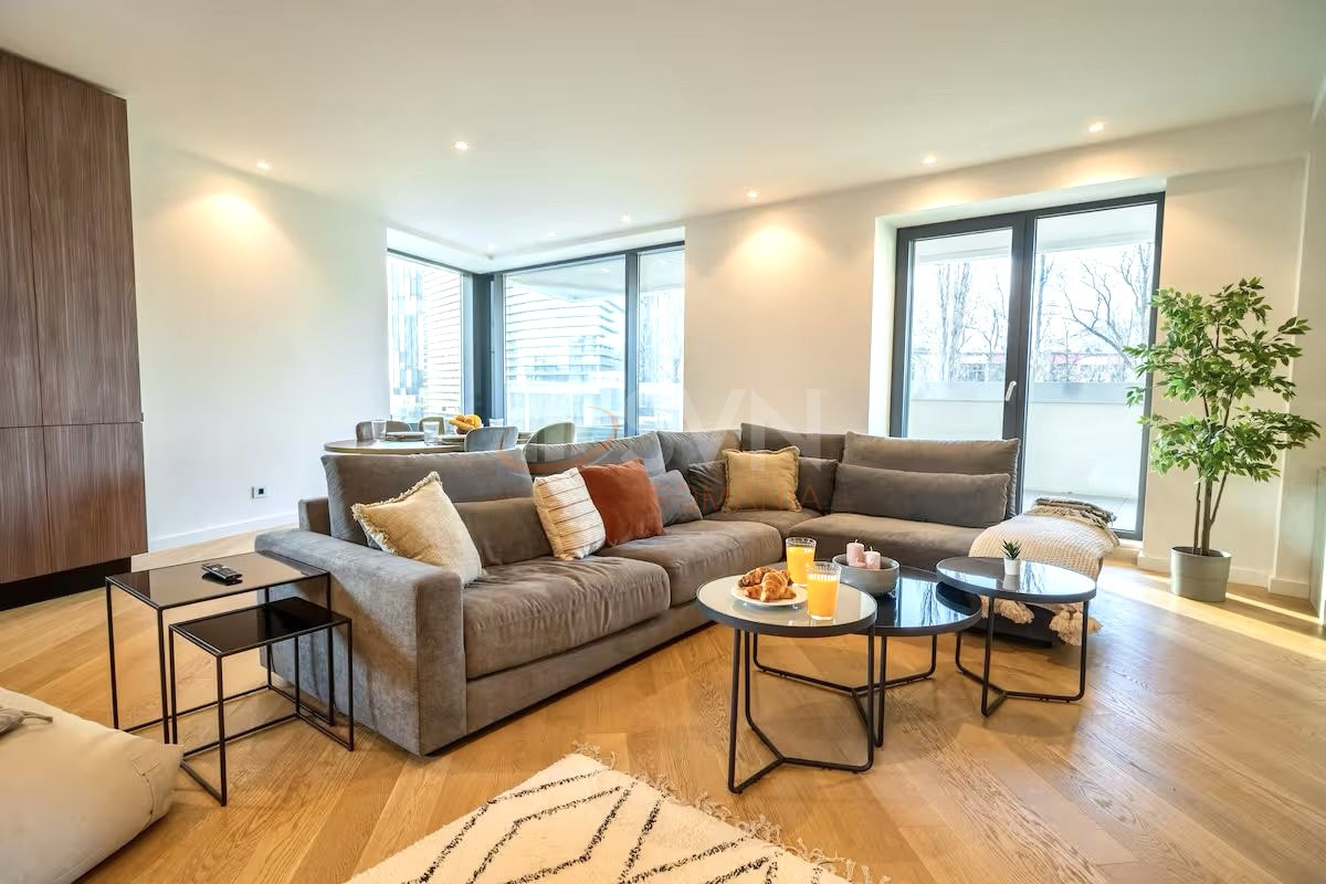 Apartamentul este generos spatios si luminos, cu ferestre ample ce permit luminii naturale sa inunde fiecare colt al incaperii. Designul open-space imbina perfect livingul, bucataria si zona de dining, creand un spatiu fluid si prietenos, perfect pentru relaxare si socializare.
