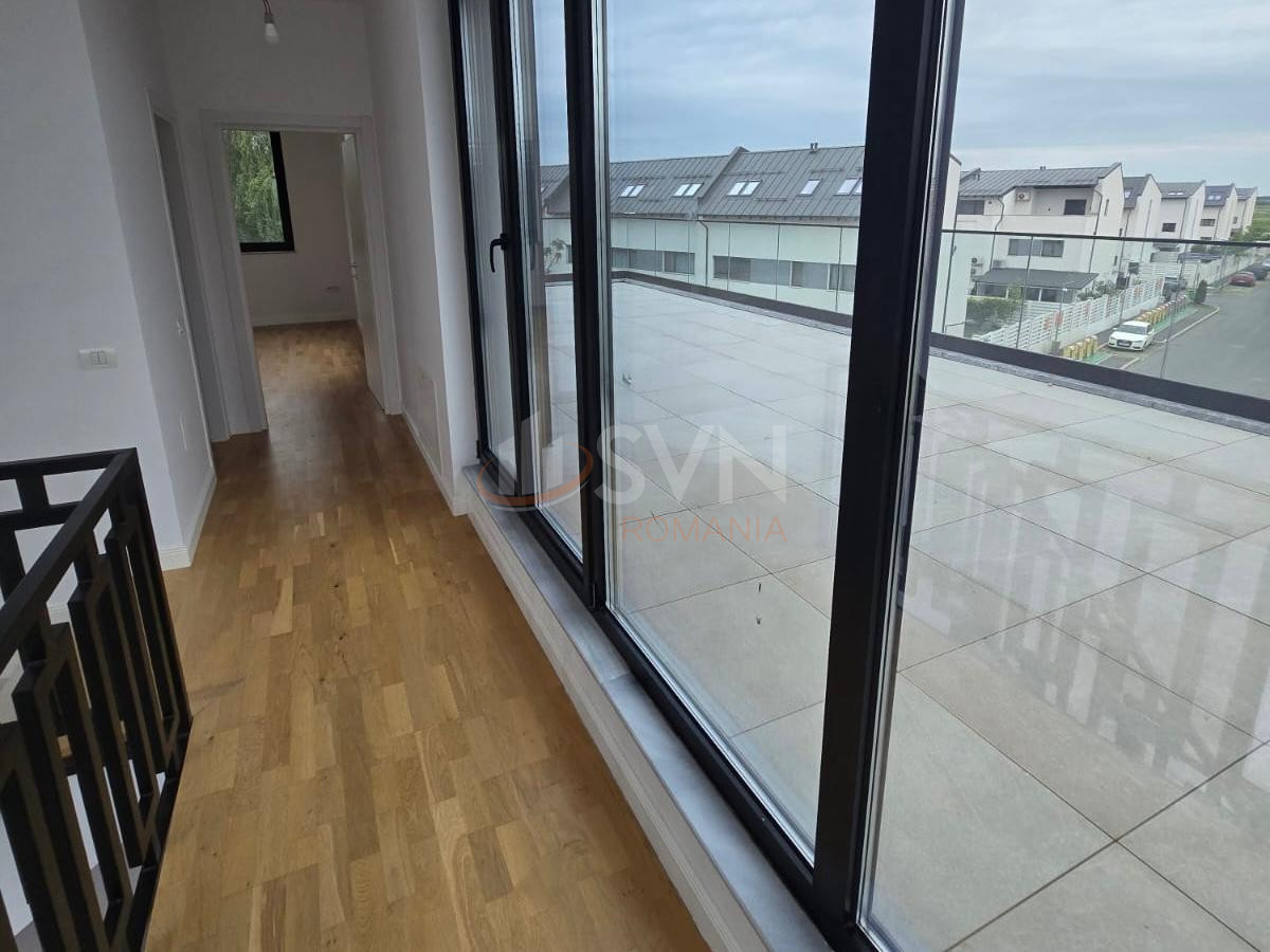 Casa dispune de regim de inaltime P+1+M, si este formata din living, bucatarie , birou , terasa la parter, iar etajul cuprinde 2 garsoniere , fiecare cu camera de zi si scara interioara spre cele doua dormitoare cu bai proprii si 2 terase.