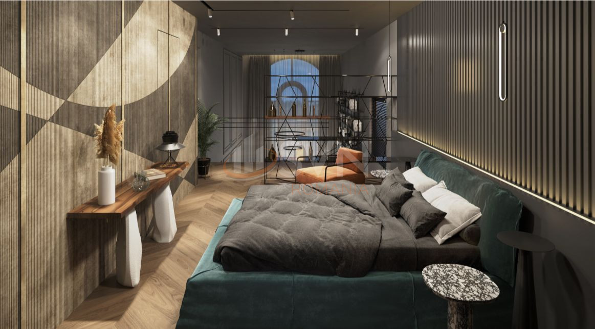 Etaj 1: 3 dormitoare dintre care doua cu dressing propriu, 3 bai si 2 terase. Suprafata utila a acestui etaj este de 90 mp la care se adauga 2 terase de 34 mp.
