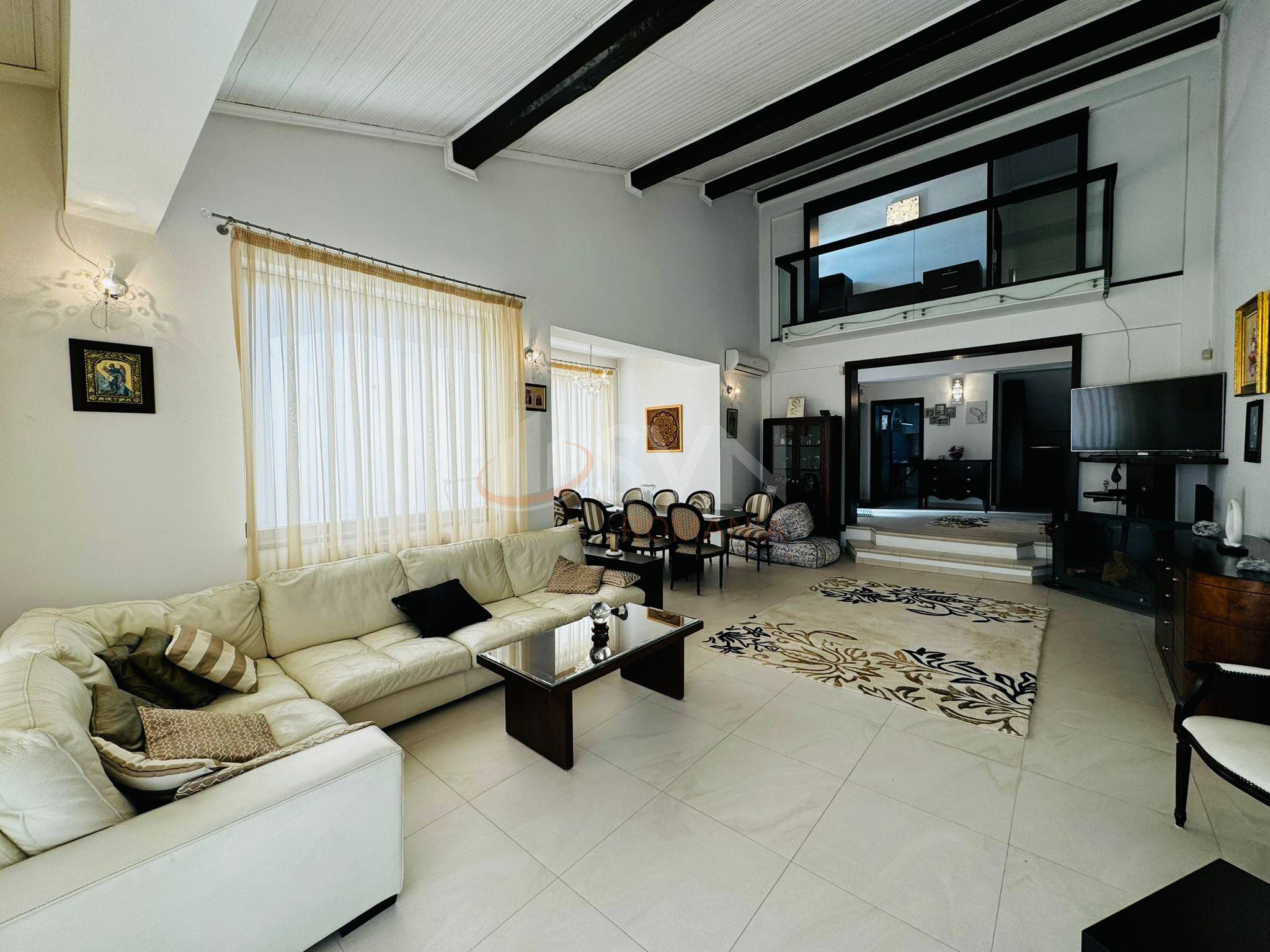 Parterul este alcatuit din 3 camere,2 bai, antreu, bucatarie,hol avand o suprafata totala de 113 mp.
