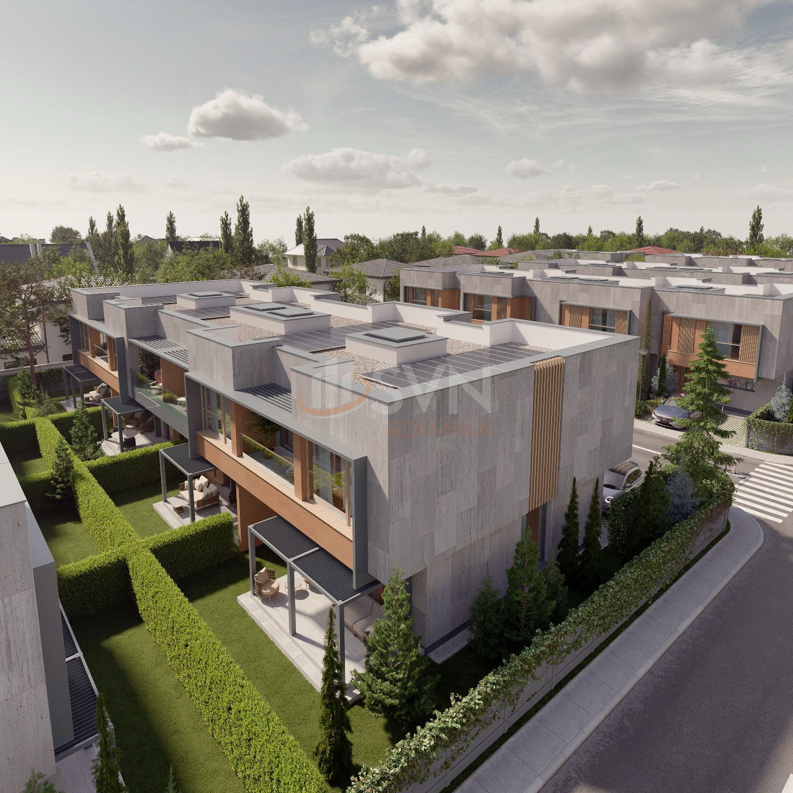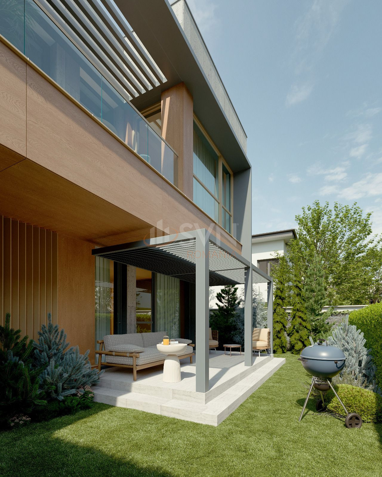 Vila se afla pe un teren de130mp cu o curte libera de 40mp.