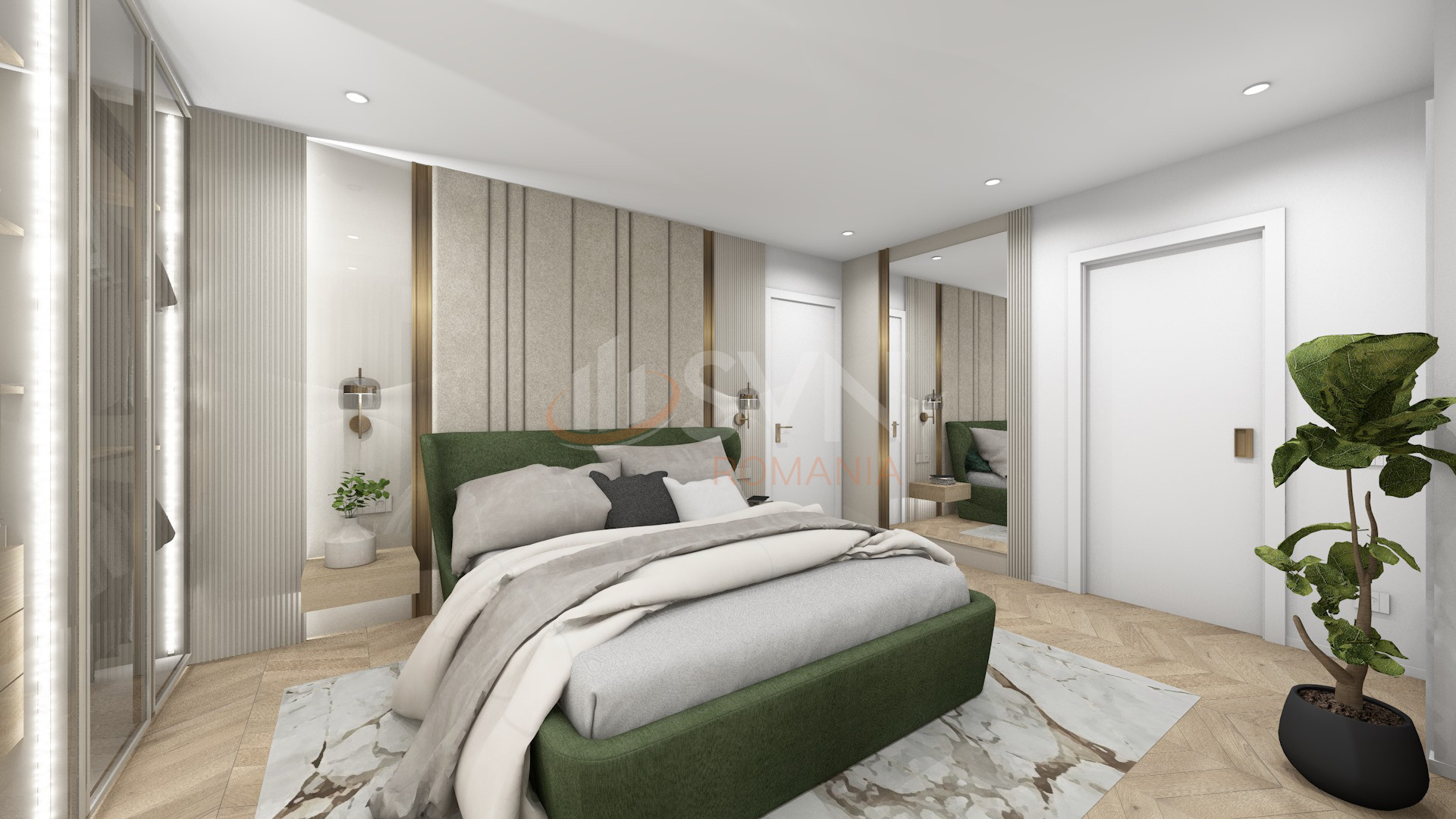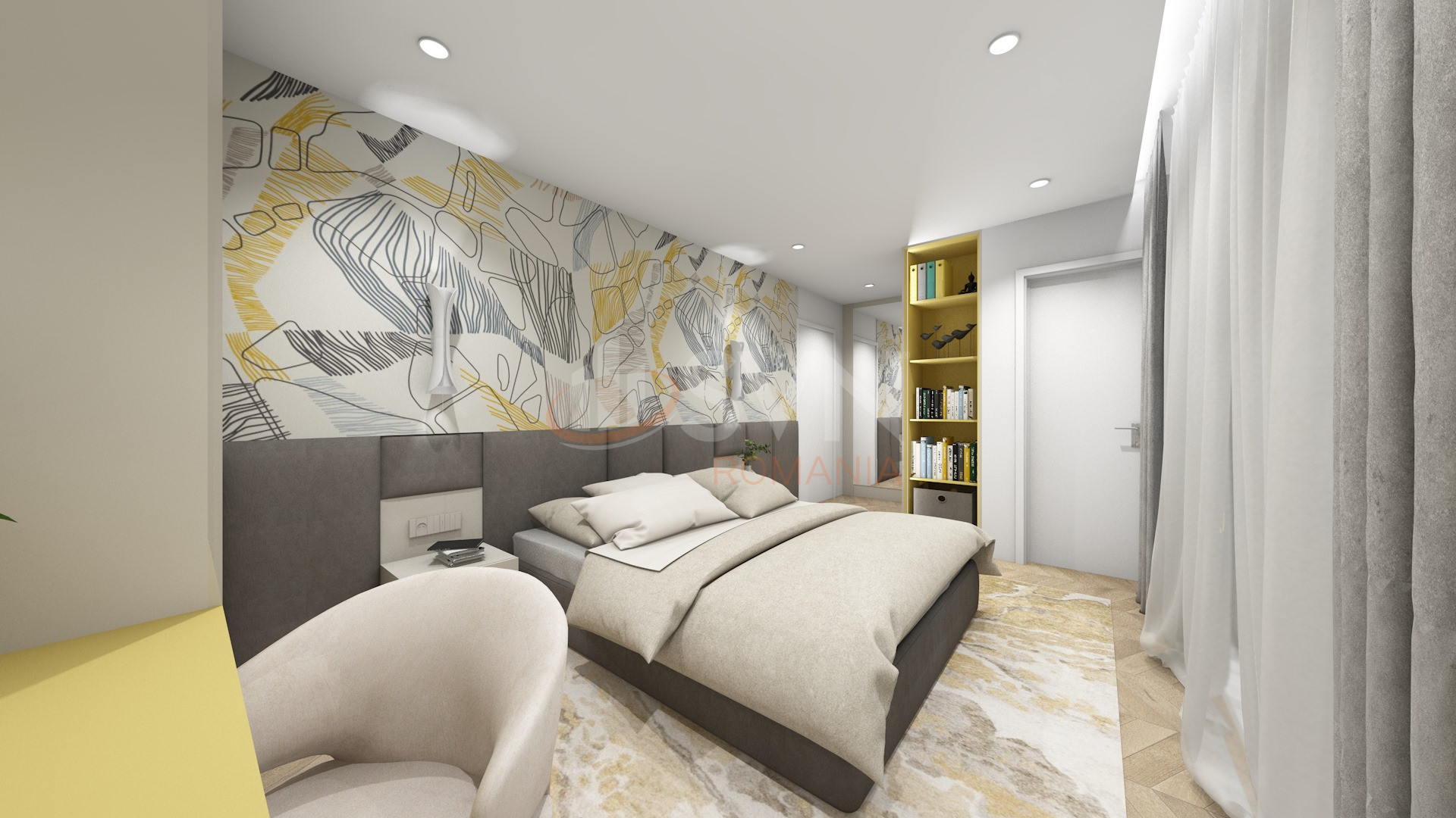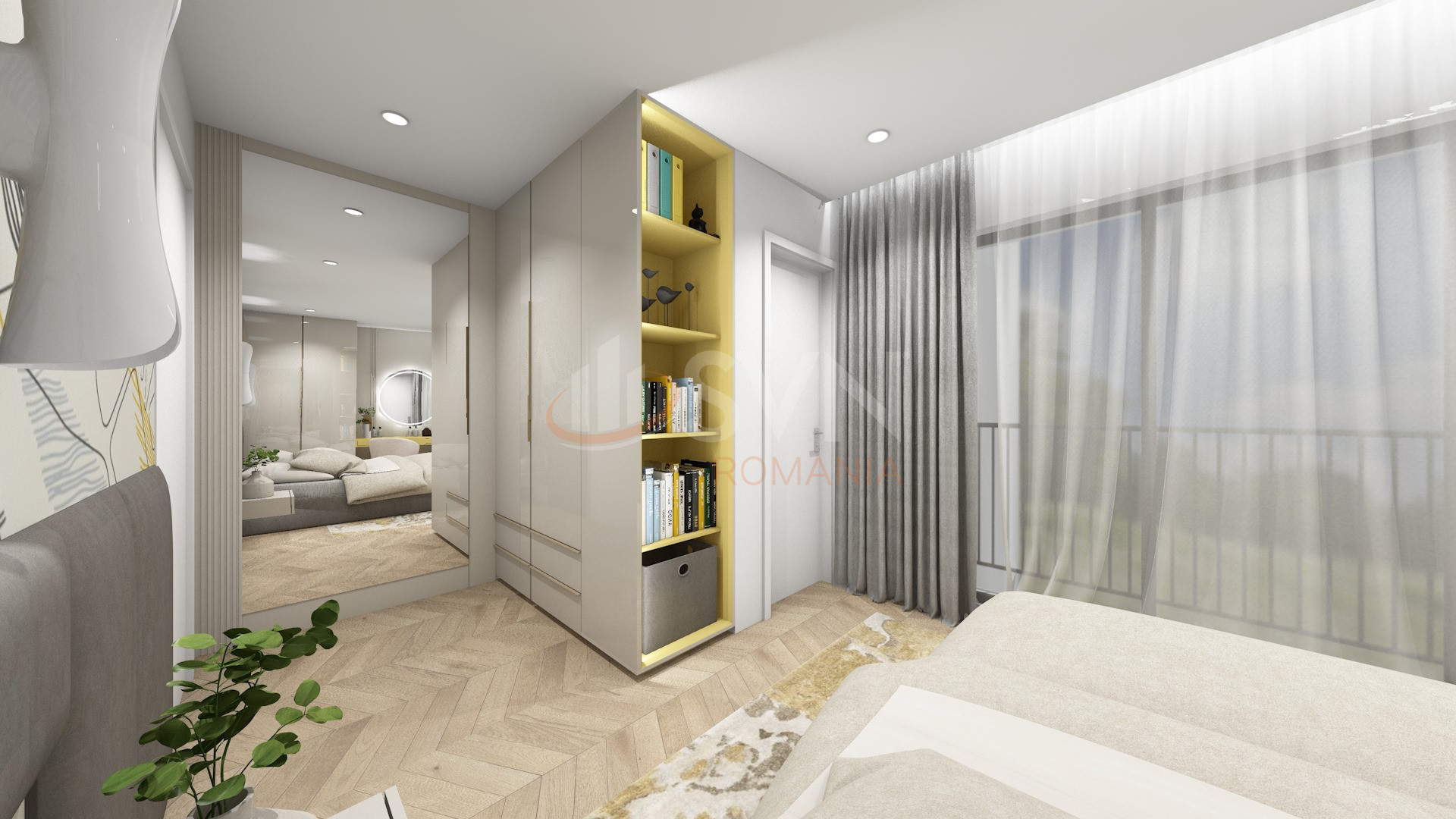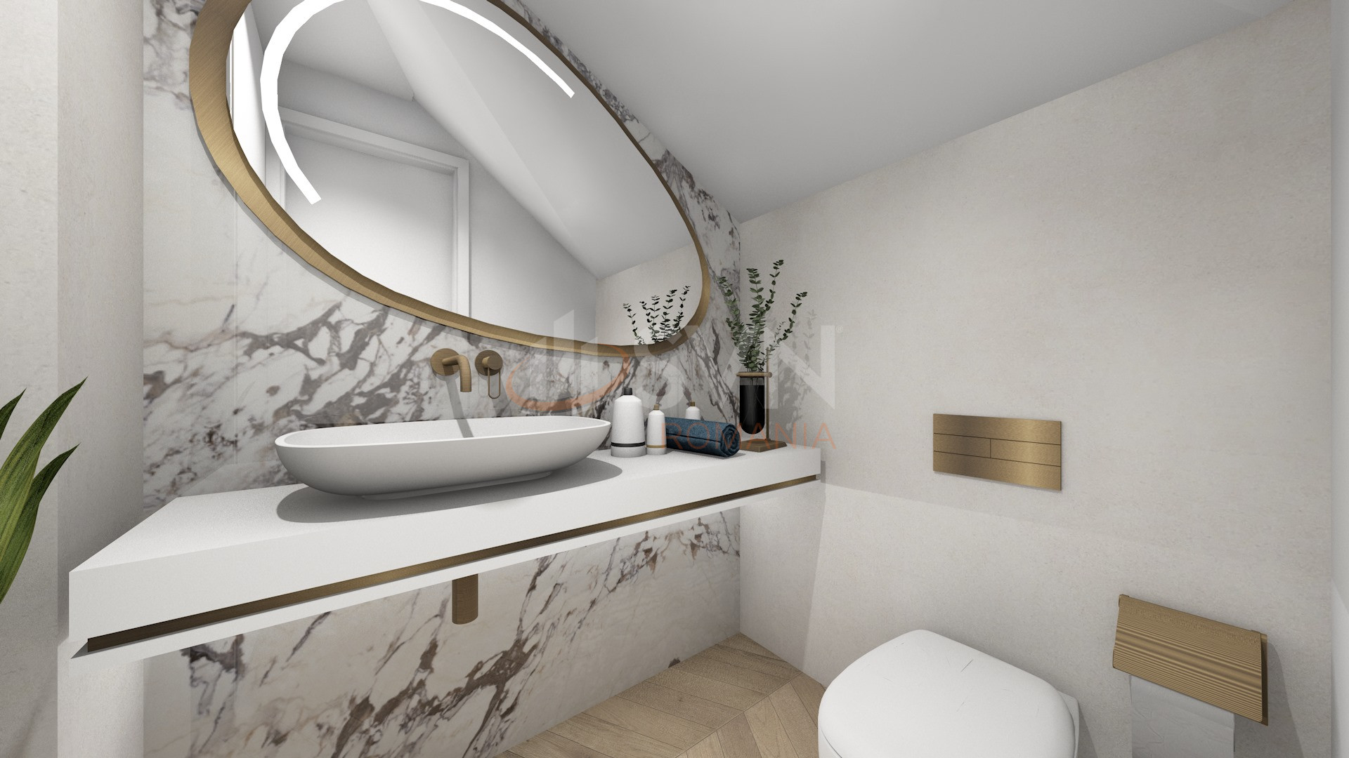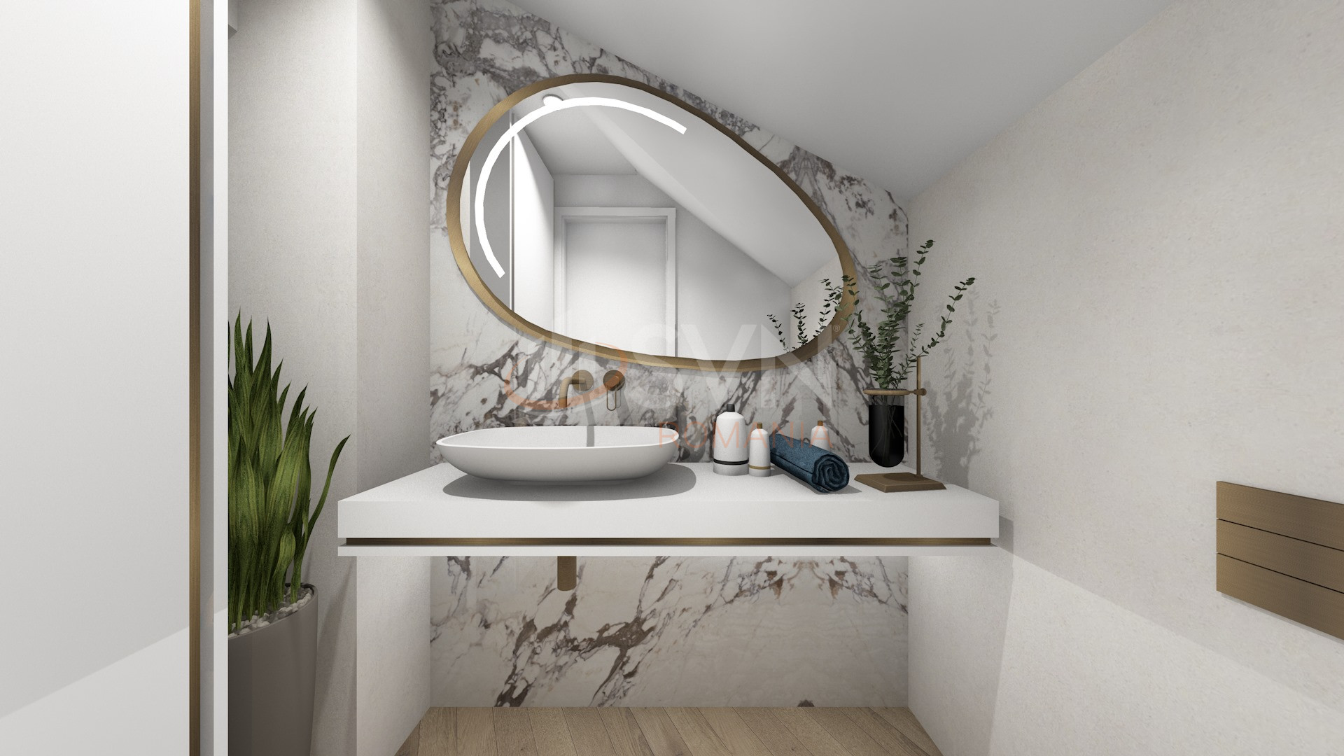 - Mansarda : dormitor, living, baie, logie
