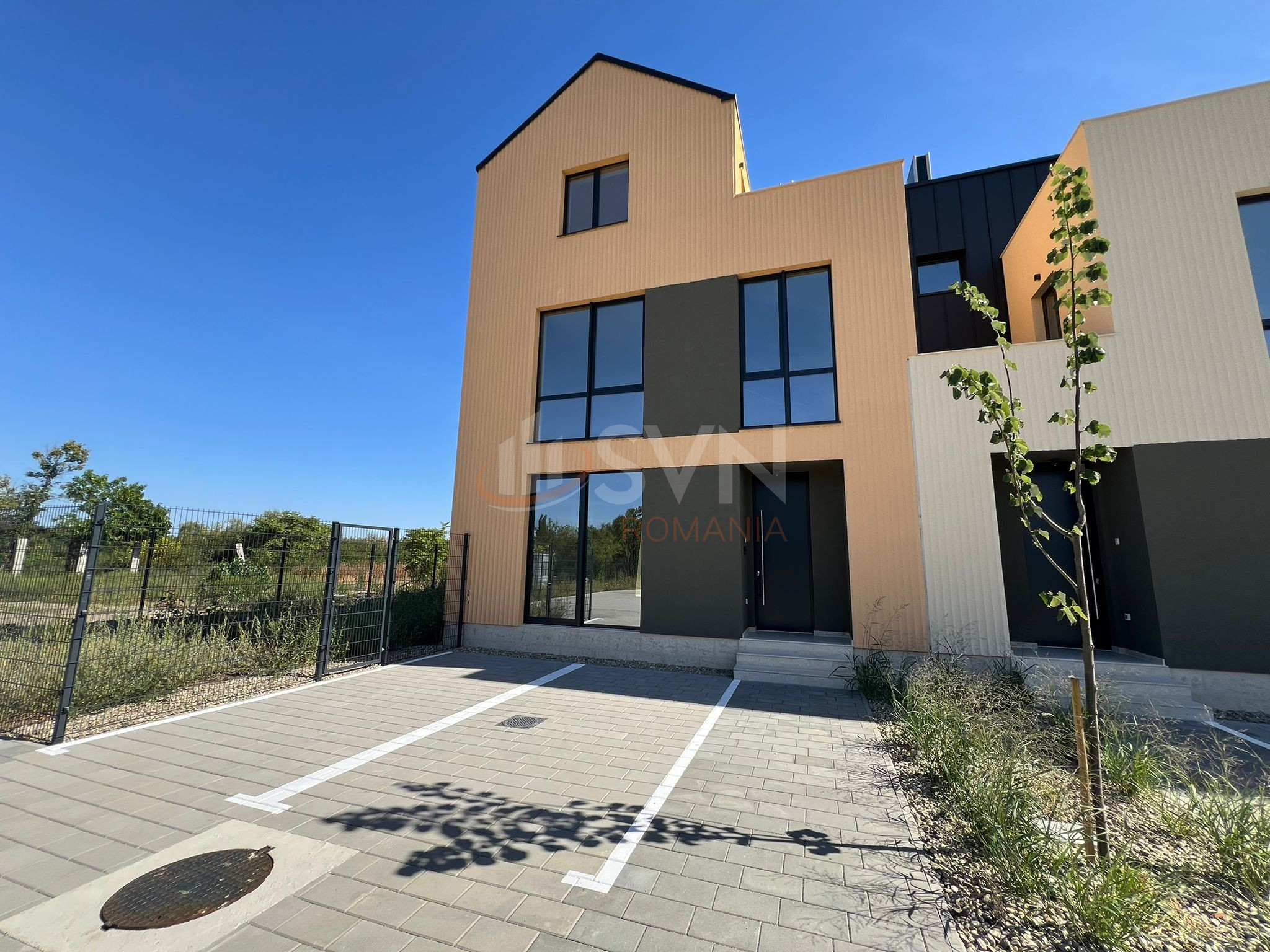 La etaj sunt 3 dormitoare plus zona birou si 2 bai generoase. Duplexul beneficiaza de 2 terase, care pot fi utilizate pentru relaxare, socializare sau pentru a crea un spatiu verde privat. Gradina amenajata reprezinta o zona suplimentara de relaxare si frumusete, unde puteti petrece timp in aer liber si va puteti bucura de natura. Complexul beneficiaza de ample spatii verzi, drumuri largi si locuri de joaca si este protejat cu paza fizica permanenta