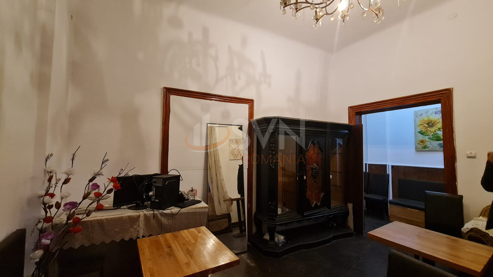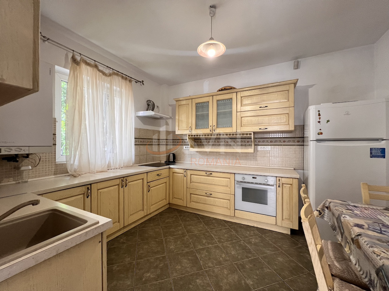 La parter avem bucataria inchisa, camera tehnica, un grup sanitar si zona de dining si living.